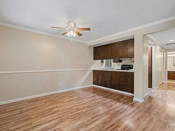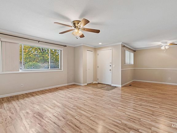 Great value in West Boise. Just 2 blocks from shopping and banks minutes to walk to. Easy care flooring throughout. Expansive living area with formal dining. 2 separate living areas living room and family room. Master bedroom has master bath with shower. Utility room that is not a hall utility. Several storage sheds. Fenced back yard with covered patio and entertainment shelf. Off street parking pad leads to RV pad behind gate. Automatic sprinkler system. Double car garage. Most of property just painted interior.