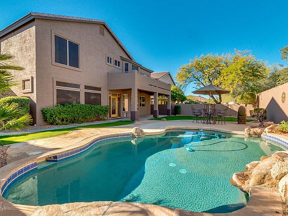 HUGE price reduction! Two newer Trane AC units - top of the line! New paint and carpet throughout. Beautiful home in the premier master planned community of Las Sendas! Enjoy mountain and valley views from this gorgeous gated community. Enjoy your morning coffee from the master bedroom walkout balcony overlooking the mountains. Three other bedrooms are upstairs - one is on-suite. The fifth bedroom is downstairs with a bathroom - a perfect guest suite or office! The laundry room is upstairs for convenience. The kitchen is light, bright, and open to the large family room. The kitchen features granite countertops, gas stove, large island, and pantry. In the backyard, you'll find a grassy yard, flagstone patio, and sparkling pebbletec pool with waterfall. Come make this home yours today