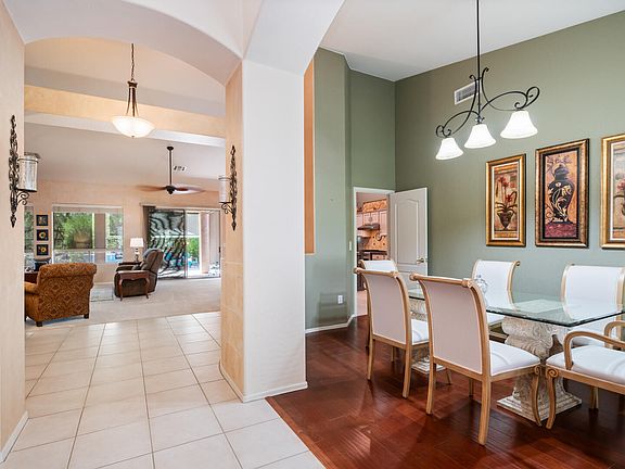New lower price! This rare yet popular Sagewood with Great Room option Floor Plan offers plenty of space to host family & friends. One-owner, well-maintained and meticulously clean home features a great room concept and is light and bright with a wall of windows overlooking the very well-manicured, low maintenance landscape. The kitchen is a dream for the chef in the family offering a newer gas range w/ vented hood. Updates include granite counter tops and tumbled travertine throughout the home. The master bath offers a spa like relaxation experience. Enjoy the extended living space under the covered patio while taking advantage of the private pool with water feature and a built in bbq. Pick fruit from your own citrus trees. The roof from the pitch down to the rear of the house is newer & under warranty including the patio roof. There is newer carpet with tempur-pedic padding. The refrigerator is new and may be included in the sale along with the washer and dryer. Most of the furniture can be purchased on a separate bill of sale. Easy enough to lock-n-leave and 100% ready to move in!