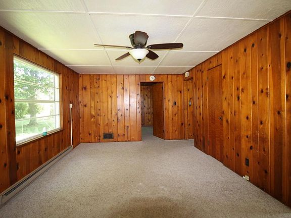 2 Bedroom ranch home on 37+ acres of beautiful rolling countryside. Knotty pine paneling in living room and both bedrooms. Sliding doors from kitchen out to deck and fantastic country views. Includes small fruit orchard. 2 car detached garage and small storage shed. Some woods and creek at south end of property. So many possibilities here!!