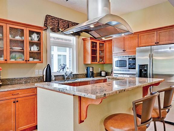 A fantastic opportunity in Bown Crossing! Immaculate home provides low-maintenance living in a desirable location. Trellis-covered entryway opens to a stunning interior featuring a spacious great room design and abundance of natural light. The home is completed with tall ceilings, hardwood floors,and top of the line finishes. Openconcept Kitchen features slab granite countertops, glass-front cabinetry, built-in microwave, and center island with built-in gas cooktop and custom range hood.