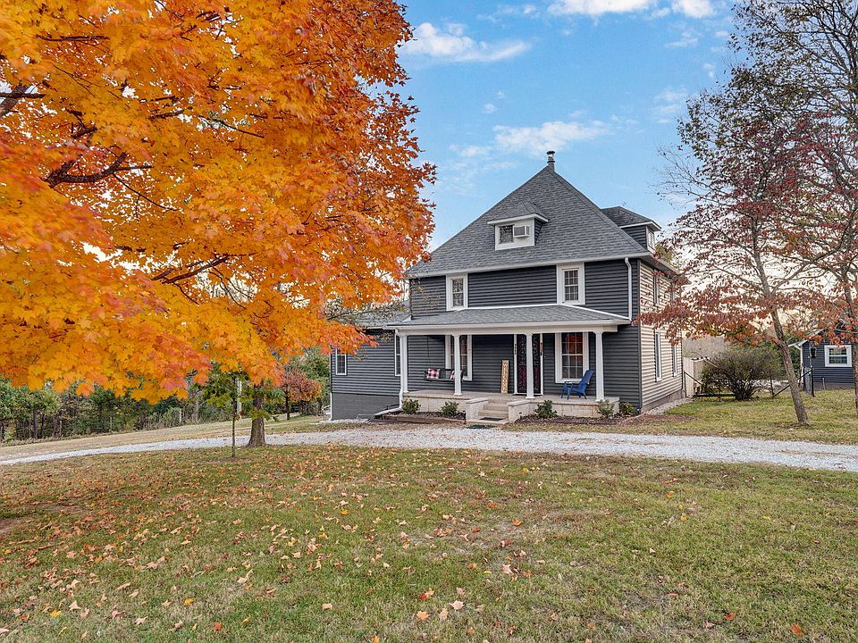 Rare opportunity to own a piece of history beautifully blended with modern comfort and country charm. Set on 3.41 picturesque acres with year-round creek access and a charming spring house, this renovated 1910 farmhouse welcomes you with a covered front porch framed by fresh azalea landscaping and a large back deck perfect for relaxing or entertaining. Beyond the home, you'll find an in-ground pool paired with a pool house ready for storage and a concrete pad already in place for your future hot tub. For those who need space to create or store, the impressive 36x60 shop offers soaring 14' side walls, three 10' garage doors, a 12' garage door, 220v power, heat from a wood-burning stove, and two additional covered porches. Step inside and discover a thoughtfully updated interior designed for both daily living and memorable gatherings. The spacious living room glows with natural light and features a beautiful fireplace and flexible space for a home office. The front room off the entry offers another cozy wood-burning stove and leads into the original dining room, while the dining area with coffee bar overlooks the pool and backyard, connecting seamlessly to the hearth room with a gas fireplace. At the heart of the home is the fully renovated kitchen, a true chef's delight featuring a Viking gas stove, Electrolux convection wall oven and microwave, granite counters, tile backsplash, under-cabinet lighting, a breakfast bar, soft-close cabinetry, and a large pantry. Just off the kitchen, the laundry area offers granite counters ideal for folding or serving as a buffet during gatherings. The main floor also offers a bedroom and a full bath with a walk-in shower and charming claw foot tub. Upstairs, you'll find three more bedrooms, a landing accented by an artful mural that adds to the home's character, a full bathroom, and access to the roof. The third level features a spacious bunk room with a half bath--perfect for guests, kids, or creative spa