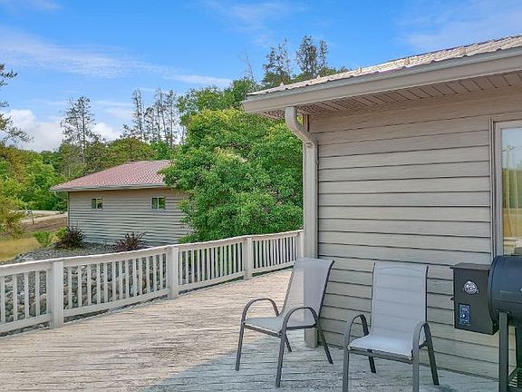 Desirable Breezy Point location within walking distance of 3 golf courses, numerous dining and entertainment options, Pelican Lake access, park, convenience store and hardware store. Perfect for a pilot and or plane owner, located next to the airport runway, this Eastern Red Cedar log-built home has newer steel siding and roofing. Vaulted cedar ceilings, bay window. Log interior with some drywall. Master suite with 3 4 bath, walk-in closet and French doors that open to the large wraparound deck. New flooring in kitchen and dining room. Large lower-level family room with wood-burning fireplace and French doors that open to the patio. Oversized detached 2-car garage with cement apron. Along with a 10x12 Shed. New carpeting in the living room, hallway and two bedrooms.