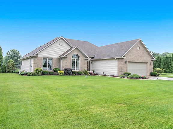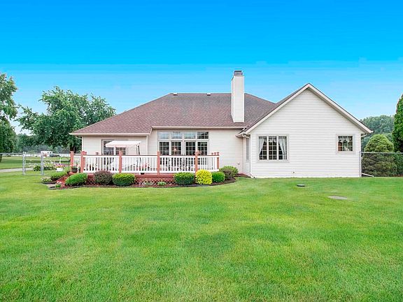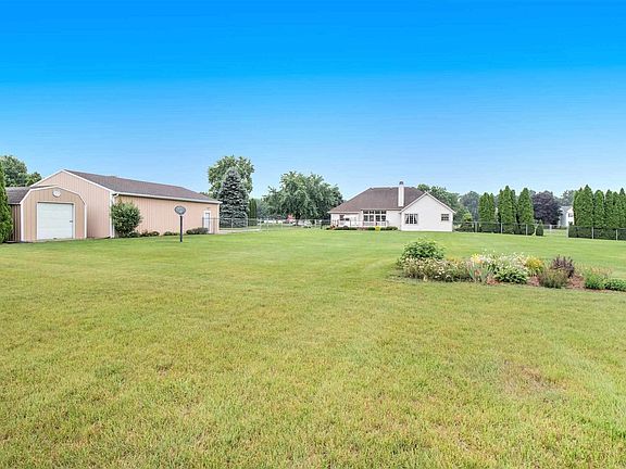Beautiful Terri Brooke East ranch on 3 acres with a 30x40 heated and finished Outbuilding! Built by Town & Country builders with 2x6 walls, Andersen windows. Great room with fireplace and high volume ceilings with plant ledge. Formal dining. Eat-in kitchen with breakfast bar has granite countertops. Kitchen cabinets have easy roll out shelf and pantry. New dishwasher. Convenient 1st floor laundry. Den/3rd bedroom with closet. Large master bedroom suite with bath has double vanity, jacuzzi tub, separate shower, and walk-in closet. Full unfinished basement has tons of storage. Water softner and sprinkling system. 30x40 Pole barn is insulated and heated with tile floor. Plus additional 10x24 garage in back. Beautiful lot. Backyard is fenced. Pre-approval letter with offers please. **Note: Owner has new home under construction so Possession will be toward end of October.