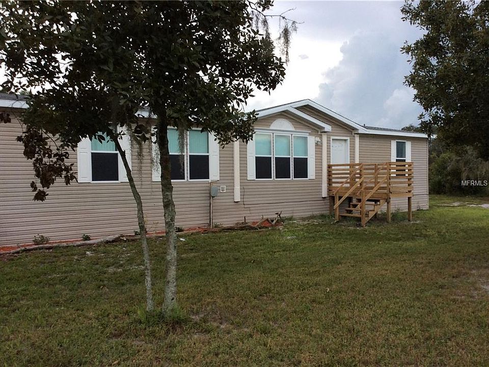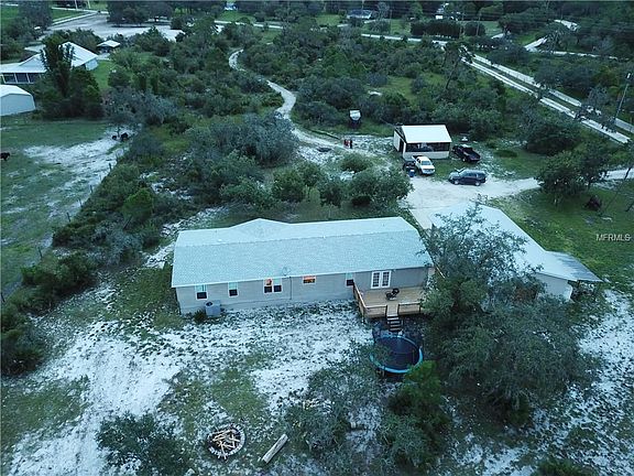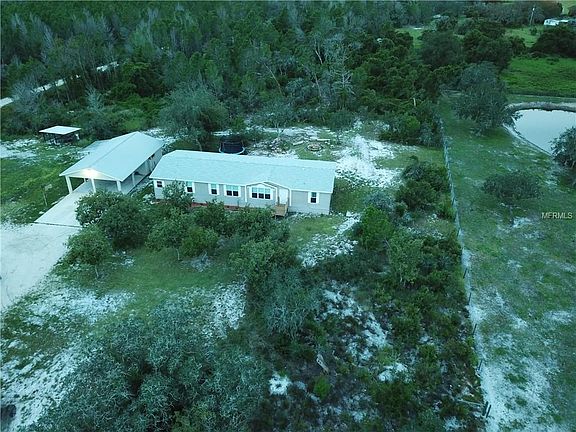 Experience the pleasures of Country Living in this 2,280 square foot Manufactured Home. Located on 5.87 wooded acres in rural Myakka City. This 4 bedroom, 2-1/2 bath home is complemented by a new 2018 asphalt shingled roof and a remodeled side and rear deck. A 20'x24' block garage with solid poured concrete top lintel, garage roll up door, side man-door and electric. The garage has an attached 24'x24' covered carport with concrete pad and an additional 24'x24' open concrete pad for parking. There is plenty of space available for animals with a 24'x24' covered pole barn with a separate set of dog pens.