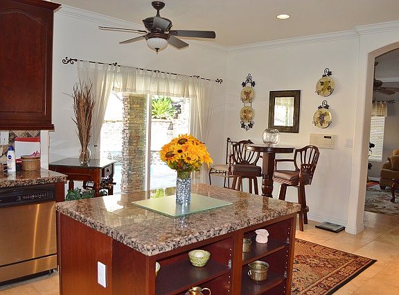 Gorgeous NEWER Custom Built POOL Home w/Lake Views featuring 4 bedrooms, 3 baths, 3112 sq ft, Original owners & built in 2003. Fabulous home thru double leaded glass doors to beautiful entry w/2-story ceilings. Large living room w/stone tiled fireplace, formal dining room w/ chandelier. Beautiful kitchen w/granite counters, built-in stainless appliances w/ gas stove top, double oven, trash compactor & refrigerator + walk-in pantry, eat-in area & slider to backyard & pool. Separate family room w/travertine fireplace. 1 bedroom & bath downstairs w/tiled vanity & shower. Grand staircase w/custom iron details leads upstairs to master suite w/ensuite bath featuring beautiful tiled large spa tub, glass enclosed shower, dual sinks & vanity area, walk-in closet w/2 entry's + large private balcony overlooking backyard & pool. 2 generous sized guest bedrooms + spacious open loft w/built-ins & access to large front covered balcony w/views of the lake. Exquisite backyard w/sparkling rock pool & spa + waterfalls, covered patio, built-in BBQ w/bar & lush landscaping. Located on small cul-de-sac. Great curb appeal w/artificial grass. Propane, ceiling fans, dual AC's, tankless water heater, alarm system & high end extra insulation