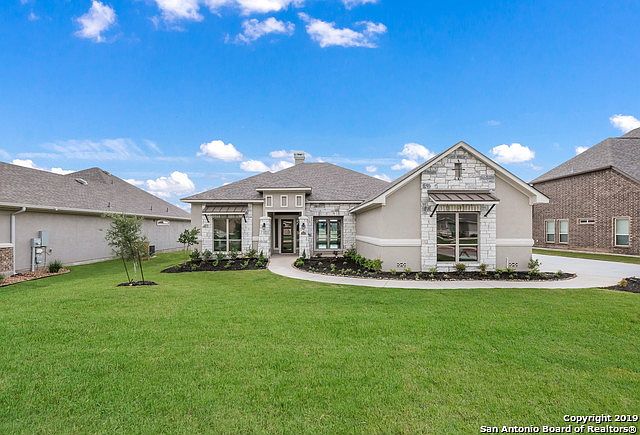 Beautiful Custom home ready to move into before Summer!Single-story 4 bed, 3 bath open floorplan on a greenbelt. Great Room looks onto a rear covered patio offering country views. Huge Master suite has spa-bath with walk-thru shower and spacious closet. 3-car side entry garage provides ample parking and additional storage. High-end finishes throughout including stainless steel built-in appliances, granite countertops and wood floors.