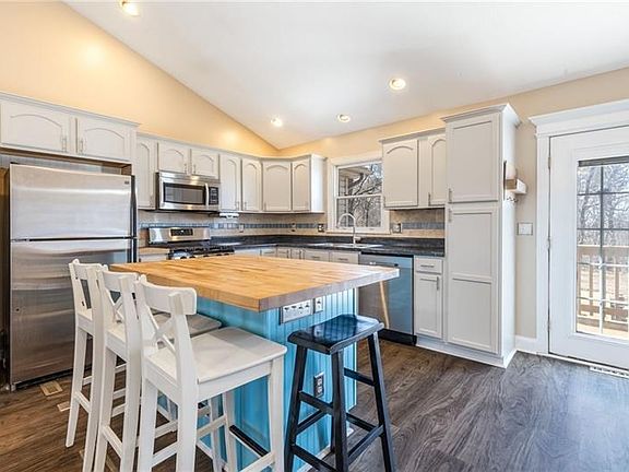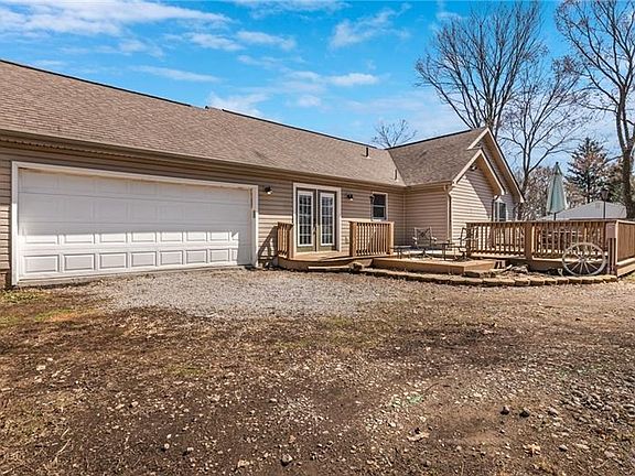 Looking for a RANCH not in a Plan, this is it! Three bedrooms and three full baths, could have a fourth bedroom in the lower level if needed as there is an egress window. Open floor plan kitchen, dining and living room with laminate wood flooring opens to spacious rear deck, there is a concrete pad for a future hot tub, pond feature in the landscape as well as a firepit. Rear yard is wooded, also there is a fence running parallel to the home for added safety and privacy. The master suite features walk in closest and additional closet along with a full bath. Second bedroom has a built in window seat and book shelves. The lower level is set up for entertaining, large built in bar, full size entertainment center which stays, large decorative niche to display art work, newly completed lower level full bath with custom tiled shower, separate laundry room for you to make your own. Few finishing touches needed in the LL to complete your space.