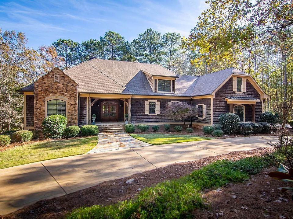 "ULTIMATE LAKE FRONT ESTATE AND DREAMBUILT HOME WITH 4.41 ACRES, MAX DOCK, IN THE HEART OF REYNOLDS LAKE OCONEE WITHIN WALKING DISTANCE TO THE LAKE CLUB, RITZ CARLTON, OCONEE COURSE, THE KINGDOM OF GOLF AND MARINA" This is a rare find, a truly special property inside the gates offering both the privacy of beautiful 4.41 acre land and lake. Recently renovated and updated, this 5 bedroom, 4.5 bath custom home by DreamBuilt creates the perfect blend of casual elegance and timeless details. This estate offers endless opportunities for your own future outdoor resort amenities. Build a pool, pool house, cabana, outdoor kitchen on the beautiful sprawling land. You are minutes by boat/jet ski or short walk via walking trail to The Ritz-Carlton & Lake Club. The main level features new flooring, large great room with Australian pine knotted ceiling beams & stacked stone fireplace. The French doors call you outside to relax on the expansive porches and take in the natural beauty of the land and the lake. The chef's kitchen is complete with special accents including two ovens, custom cabinets, a large center concrete island, butlers pantry, professional appliances & adjacent screened porch. The dining room is stunning accented by curved wall of windows overlooking the property and water. The beautiful master suite is located on the main level with access to a private balcony and porch equipped with large screen TV. There is an office on the main level and a large laundry room with sink and custom cabinets. The oversized garage apartment with bar and refrigerator is perfect to add a future custom bunk room. The spacious terrace level features a family room with stacked stone fireplace, custom bar, large closets & oversized windows and glass doors bringing the outside in. There are three large guest suites and two baths in the terrace level. Plenty of storage area, with space for a workshop or another office. Updates included: new wood flooring and carpet throughout the house, repainting, lighting, new HVAC unit, EV plug garage, and dredged cove for water depth. There are very few properties that offer both the acreage and lake located in the main area of Reynolds Lake Oconee in close proximity to it's premiere amenities. THIS SPECIAL PROPERTY IS A MUST SEE! Membership is available.