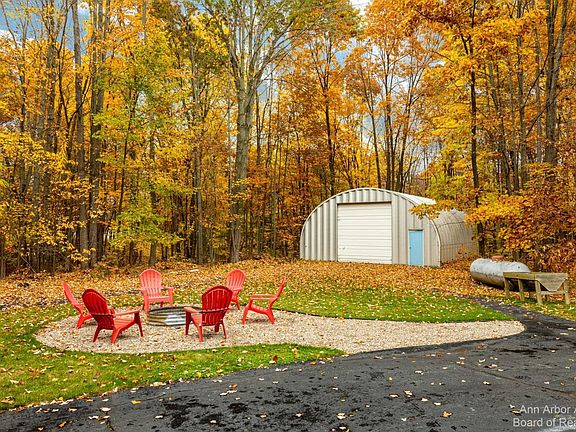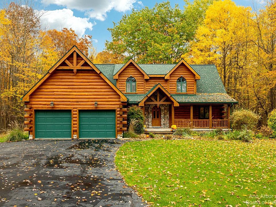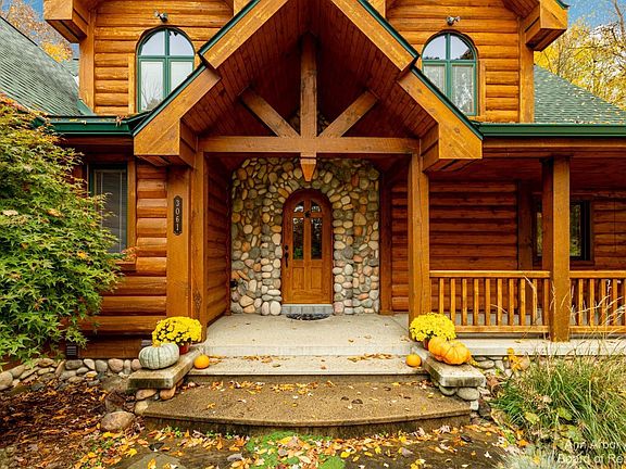 Welcome to your own slice of peace on earth! This thermal log-sided home was built to fully enjoy the stunning 3.78 acres it sits on. Each high-end interior reflects natural elements including tumbled marble and ceramic flooring, hickory Chelsea plank hardwood floors, granite countertops, hickory Lafata cabinetry, copper kitchen fixtures and a farm sink. The first floor ensuite has both a jetted tub and a walk-in shower. Each closet includes California closet systems. The living room is focused around floor to ceiling windows that showcase your stunning view and a natural, stone fireplace. A finished basement provides additional living space and a craft room/office space if needed. The path to the artisan crafted, arched front door and your generous front porch is Bluestone pavers. When it comes time to tinker there is a 30 x 38 Steel out building. It was designed with a reinforced concrete floor to allow for RV storage as well., Primary Bath, Rec Room: Finished