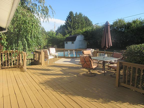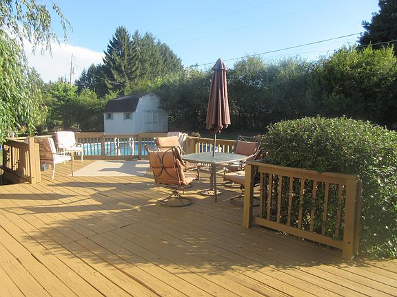This lovely, ranch home is waiting for you! Home boasts large, family room and kitchen w/ new backsplash & hardware, nice eating space, three nice sized bedrooms, 2.5 baths, ff den and a HUGE finished basement with a living room w/ fireplace and a recreational area that has entrance to the garage. Enjoy your evenings in the Florida Room or on the large deck overlooks the private land w/ above ground pool and storage shed. Many updates which include beautiful granite countertop, lighting & hardware in full bathroom, updated half bath, pergo flooring, freshly stained deck and more! Updates galore!