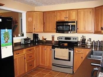 - Kitchen Features: Cabinets Stain, Eat-in Kitchen, Solid Surface Counters, View to Family Room