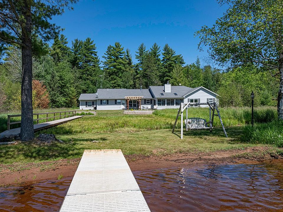 Spacious 3 bedroom, 3 full bath ranch home on 2.13 acres with 128' of level sand frontage on highly coveted Carpenter Lake just East of Eagle River. Interior features kitchen with solid surface counter tops, SS appliances, and breakfast nook. Family room has wood floors and gas fireplace. Plenty of room to also entertain family and friends in the dining and living rooms. All bedrooms, plus bonus room, are generous in size, with the master bedroom having lake views. Large mudroom for convenience coming into the house from the lake. Lakeside screened in porch, 3 car attached garage, large front porch and landscaping round out this must see home.