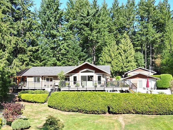 Welcome to your own private country estate on 2 acres of beautifully manicured grounds, offering peace, privacy, and exceptional living. This meticulously maintained home is filled with natural light and features a stunning open-concept living area that seamlessly flows onto a wraparound deck, perfect for entertaining or enjoying quiet time listening to the birds. A gorgeous detached studio, complete with its own heat pump and bathroom, provides the ideal space for guests, a home office, or creative pursuits. Car enthusiasts and hobbyists will appreciate the 3-car garage, two-vehicle carport, and abundant storage throughout. An accessory building adds even more flexibility, with exciting potential for a future detached suite. Combining privacy, functionality, and endless possibilities, this rare estate is a true gem.