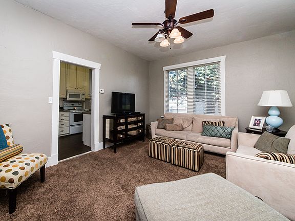 You will instantly love this beautifully updated 2 story home! Newer paint and carpet, unique tile backsplash in the all white kitchen, 4 beds, 2 pretty updated baths, neat shower enclosure, attractive vanities, nice neutral colors throughout, large windows allow for plenty of natural light, living room on main, fun family room upstairs, timeless transoms above the doors, main floor laundry and great storage in the basement. A huge .90 acre lot, cute covered front porch, mature trees, relaxing patio, mountain views, fire pit, fully automatic sprinklers, 4 carports and a storage shed. What more could you ask for at this price? Basement square footage is approximate. Buyer to verify all information.