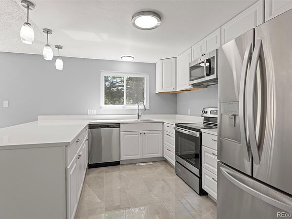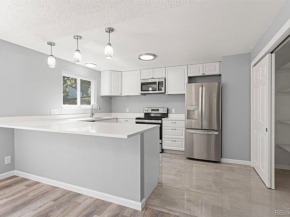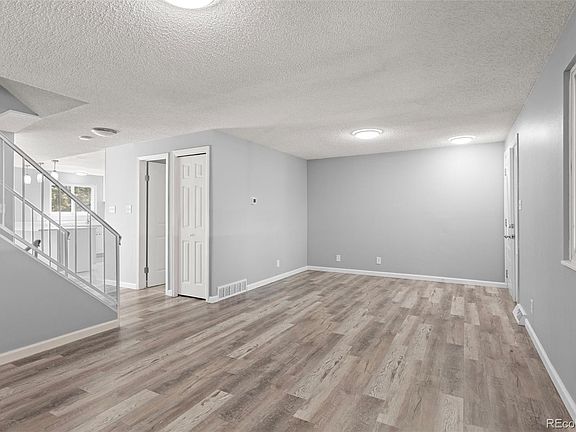 Beautifully fully remodeled Townhouse style Condo! It has an open floor plan that includes a big living room, a dining room, a social bathroom, and a kitchen with quartz countertops, a huge pantry, and all new stainless steel appliances. On the second floor, we find a master bedroom with a walk-in closet and a balcony. It also has two bedrooms and two full bathrooms. This gorgeous unit also has laminated and tile floors and new LED light fixtures. It has a basement with a big family room, laundry area, and spare room for additional storage. It comes with a large patio and two carports assigned to the unit. HOA includes a swimming pool, basketball court, clubhouse, trash collection, snow removal, and, water! Close to I-25, I-70, and I-36, Front Range Community College, shopping and dining!