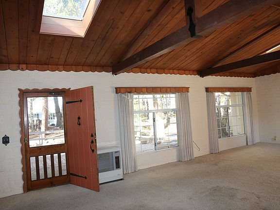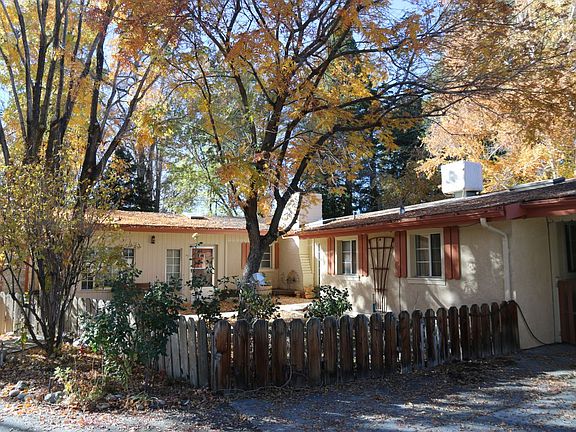 This charming, rambling home has a beautiful setting on Bishop Creek. Main house has two bedrooms, two baths, large living room, sunny kitchen and dining room. Comfortable living areas overlook Bishop Creek. The interior has one inch knotty pine tongue and groove ceilings, walls, closets and window valences. There are solid pine, decorative custom doors throughout the home. The large wooden ceiling beams in the living room, kitchen and dining room accentuate a country home feel. Built in glass cabinetry, canned ceiling lights and hardwood floors in the kitchen and dining room add even more appeal. Both the living room in the main house and living room in the attached rental unit are very generous. Rental unit has custom cabinets, large bedroom, kitchen , dining area, bathroom and private front and rear doors. A breezeway separates the home from the studio and garage. There are six skylights in various rooms of the house. It has updated dual pane windows throughout.