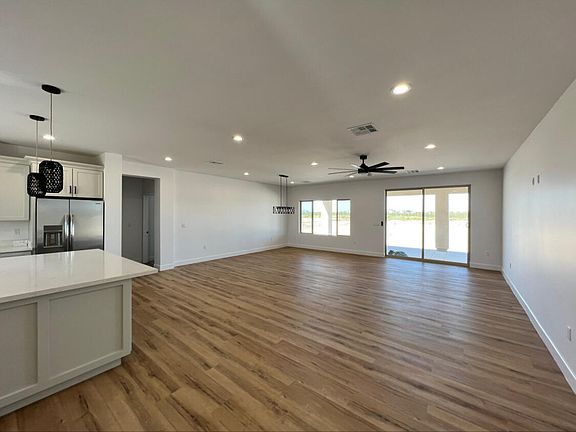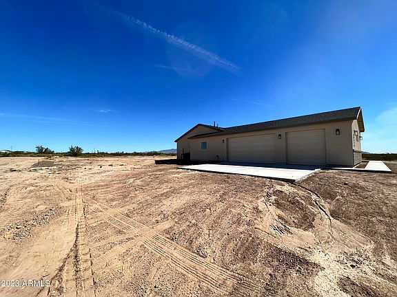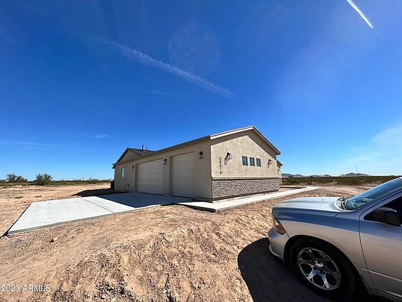 Brand new home on over 1 acre of land. 4 bedrooms, 3 bathrooms, extra large 3 car garage, ready for you to bring your horses, trailers, RVs, etc. No HOA. Kitchen has 42'' upper cabinets with quartz countertops in kitchen and bathrooms. Large laundry room with plenty of storage space. Foam insulation throughout to help reduce cooling costs. In addition to master bedroom, there is another bedroom with a private bathroom. Automatic garage door openers. Architectural shingles roof. Large covered patio will offer wonderful views of the White Tanks mountain. Shared water well. Easy access to I-10 freeway which is being made wider in Buckeye. Home is now complete.