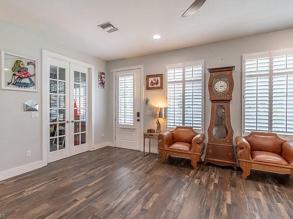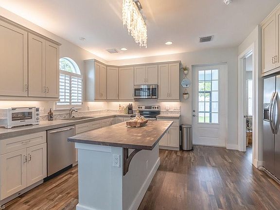 Custom-built Key West-style residence with a laid-back appeal in the heart of the Bayshore Arts District, minutes from downtown Olde Naples and world-class beaches. Impressive features of this 3 bed + den, 2.5 bath conch home include an inviting front porch, luxury waterproof engineered vinyl floors, upgraded finishes throughout, and a screened lanai overlooking the spacious fenced backyard large enough to add the entertainment deck of your dreams, along with a garage, guest house, boat storage—the choices are endless. Bonus: no HOA. The gourmet kitchen offers custom concrete counters with a butcher block island and 42” upgraded kitchen cabinets. Ideally located a stone’s throw from the Bayshore waterfront park and public boat launch. Your island lifestyle awaits!