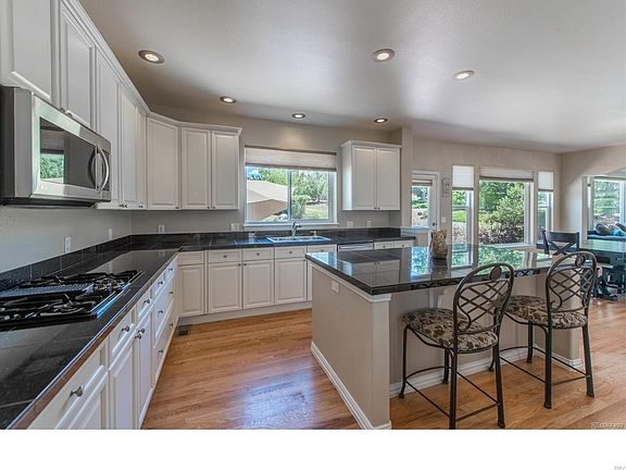 Bright & beautiful semi-custom 2-story in desirable Plum Creek welcomes you w/ gorgeous curb appeal featuring a stucco & stone exterior & exceptionally situated on approximately 1/2 acre of professionally landscaped, irrigated lawn & gardens for you to enjoy year round! This immaculate 6 bedroom 4 bath home is meticulously maintained. It boasts updated, open living spaces that welcome you home each evening. You'll love entertaining in your gourmet kitchen w/ large island, 42" cabinets, granite counters, stainless steel appliances & double ovens for those larger gatherings w/ a workspace that all overlook the outdoor patio, large backyard & gas fire pit. A wall of windows lets the light shine in & warm you! Gleaming hardwood floors stretch through the main entry, into the kitchen & upstairs complimented by choice carpeting. Formal & casual dining rooms will serve you & your guests in any way you choose! A flex space and work out area will give you the flexibility you're looking for!