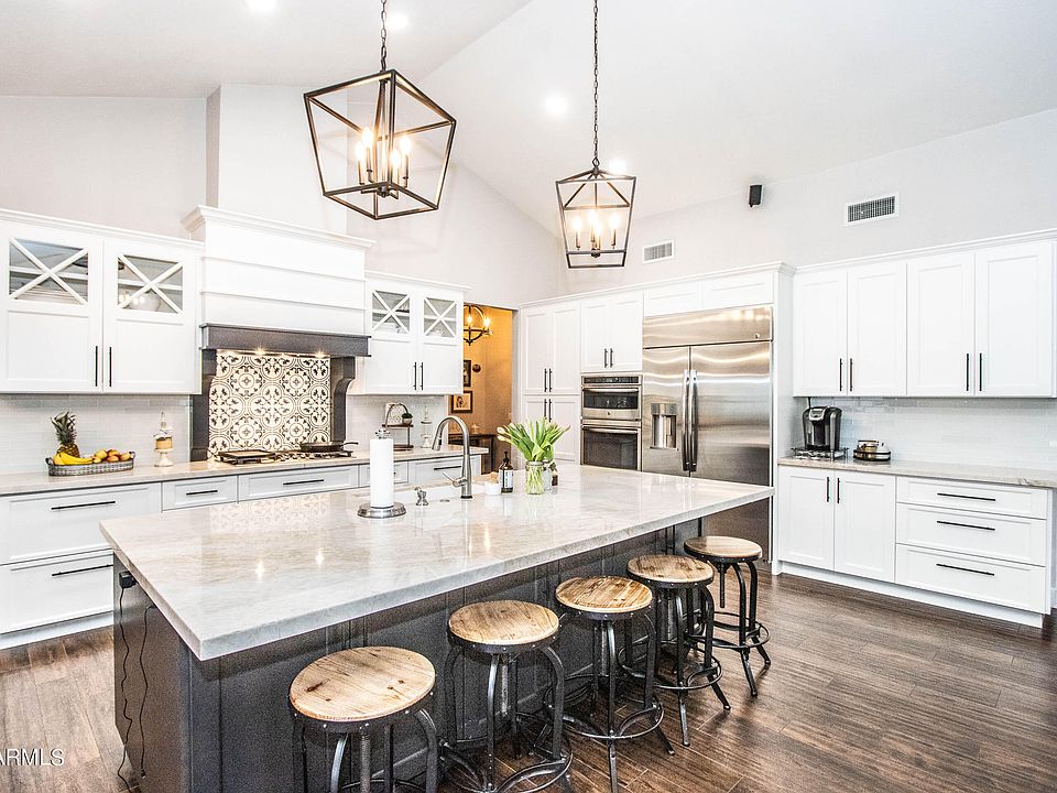 Rare opportunity to call this home in a highly sought after neighborhood with fantastic schools, you're very own! Wow doesn't cut it. This beautifully remodeled four bedroom, three full bathrooms, a great entertainers backyard, pool and NO HOA. Welcome all your family and friends as you gather together in this gigantic kitchen/great room, including custom white cabinetry and quartzite countertops. Oversized built-in fridge, double oven, a gas range and so much more. Don't forget 2 grand fireplaces (1 wood, 1 gas). French doors leading out to a beautifully extended custom patio which has its own pool bathroom entrance. Entertain to your hearts content around a Travertine surround pool, with two gazebos to beat the summer sun. And in the cooler months, enjoy roasting marshmallows around
