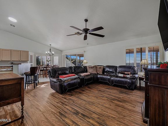 What a FABULOUS home situated on desirable corner lot w/an RV gate, MOUNTAIN & SUNSET VIEWS & NO HOA! This ideal location is just steps away from restaurants, shopping & entertainment AND within close proximity to freeway access! Discover the harmonious OPEN floor plan complemented by wood plank flooring, plantation shutters & VAULTED ceilings. Kitchen offers a pantry, an island w/a breakfast bar, abundant cabinetry, & a dining area w/a lovely BAY window. Open the double doors to find the LARGE primary bedroom, featuring direct outdoor access, a walk-in closet, & an en suite comprised of dual sinks, vanity, & a convenient grab bar in shower. SPACIOUS backyard will impress you w/an EXPANSIVE covered patio for unwinding & a refreshing pool & spa perfect for year-round enjoyment. Act now!