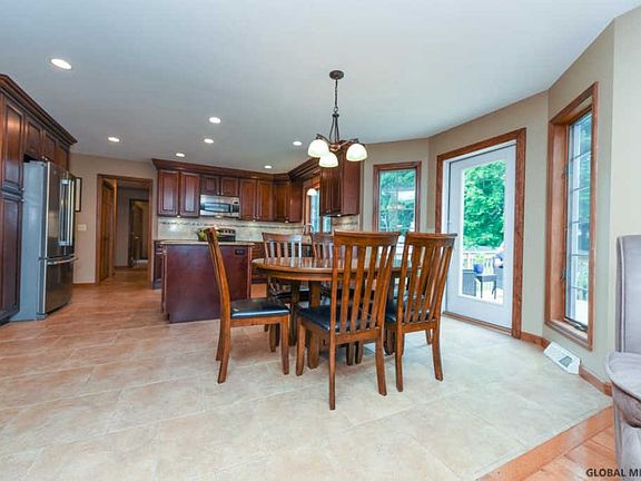 *Virtual open house Sat 6/13 at 10am* Stunning updates galore in this elegant 5 bed / 3 full bath home in desirable Williamsburg Estates. Meticulously cared for by one owner since built! Whip up yummy treats in your tasteful eat-in kitchen with granite counters, stylish backsplash & oversized island. Entertaining is a breeze with this open layout flowing from kitchen/breakfast to family room, then opening out onto the back deck. Have the master bath you've always dreamed of - gorgeous tiled frameless shower and 2 ample vanities. Survive summer at home with the huge in-ground pool. So many newer big ticket items: Roof 11yrs, Furnace & A/C 5yrs, HW tank 6yrs, Refrigerator 3yrs, pool pump 1 yr, pool liner 5yrs, Generator 15yrs. Guilderland schools. *images virtually staged.