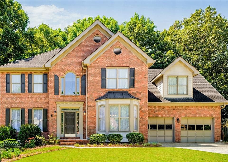 A CLASSIC BEAUTY nestled within a stunning tree lined, sought after community. Must see to appreciate the instant curb appeal, impressive size, features and charm of this immaculately maintained home. A soaring 2-story entry welcomes you to formal living and dining spaces, sweeping staircase with views to second floor. Continue to the massive, light filled, open concept family room with brick fireplace and built in shelving. Views to sleek kitchen with breakfast bar and additional dining space highlighted by floor to ceiling windows looking onto serene wooded backyard. Upstairs boasts an oversized primary bedroom with stunning vaulted ceilings, and impressive ensuite bath with walk-in closets and separate whirlpool tub/shower. Secondary bedrooms are just as impressive, providing ample space for a multitude of uses. Enjoy outdoor living at its finest on the oversized entertainment deck and sprawling, lush backyard with mature trees. Gleaming walnut hardwoods, custom pantry space, thoughtful touches throughout, full unfinished basement for storage, workshop or expansion, and more await you inside this Gwinnett Gem. New water heater Spring 2024, new upstairs AC/furnace in 2023, new downstairs AC in 2020. Swim/Tennis community with clubhouse, backing up to McDaniel Farm Park with hiking/biking trails and more to explore!