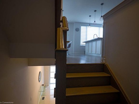 An exceptional freehold residence in sought-after Oakville, offering high-quality finishes and three outdoor spaces for your enjoyment. This end-unit townhome spans nearly 1,400 sq. ft. and features a modern kitchen with quartz countertops, upgraded hardwood floors, an elegant Oak staircase, two spacious bedrooms, two-and-a-half baths, and a huge rooftop terrace. The open-concept design is highlighted by 9' ceilings in the principal rooms, creating an abundance of natural light. The primary bedroom is a private retreat, complete with a stylish 3-piece ensuite and ample closet space. The second bedroom offers a charming walk-out balcony. Upstairs, the expansive rooftop terrace is ideal for entertaining or simply relaxing in the sun. Ideally located within walking distance to local amenities including schools, public transit, and shopping. A short drive to Oakville Hospital, highways 403/407, Oakville GO station, and downtown Oakville. This home is a must-see!