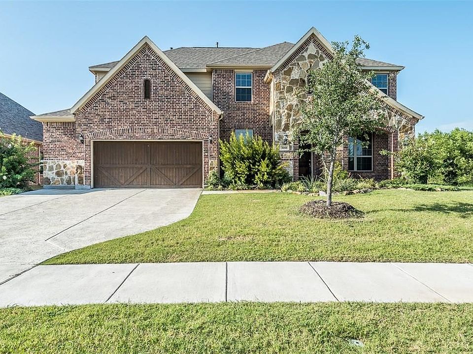 FRISCO ISD and City of Frisco. Beautiful 5 bed rooms, 3.5 baths, game and media rooms house with stone and brick elevation. Next to open green areas. Adjacent to pond. High ceiling and stone wall with fireplace in the family room. Elegant kitchen with stainless steel appliances, included French door refrigerator and granite counter top. Hardwood floor in hall way, family room, 2nd living and formal dinning areas. Large cover patio in the back. 2.5 garage. LO: DFW Home LA: Lisa Zhao
