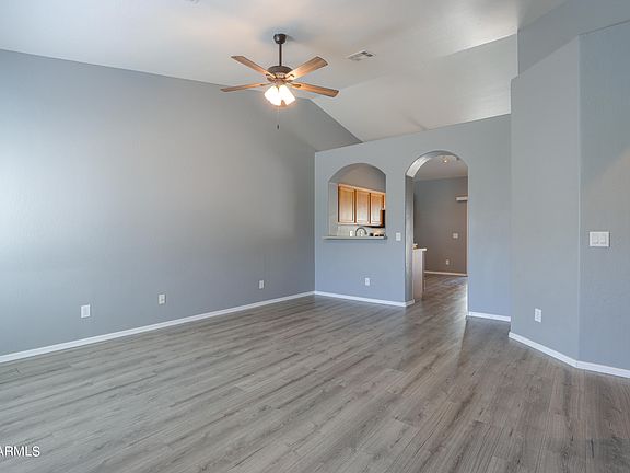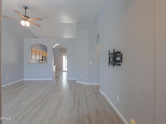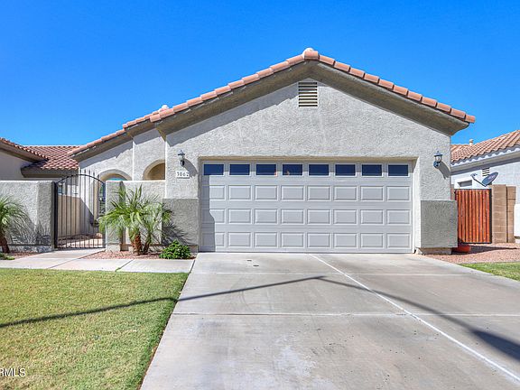 Low maintenance, move-in ready townhome in a great Mesa location! Front gated courtyard. Great room plan with vaulted ceilings. Open Kitchen with upgraded Corian countertops, oak cabinets and SS appliances. Refrigerator is included, not shown in photos. Three bedrooms, two full baths, 2'' blinds and ceiling fans throughout. Covered back patio for morning coffee. Storage cabinets in garage. Minutes from the 202 Freeway. Community pool. HOA maintains front yard. Great home in an ideal location.