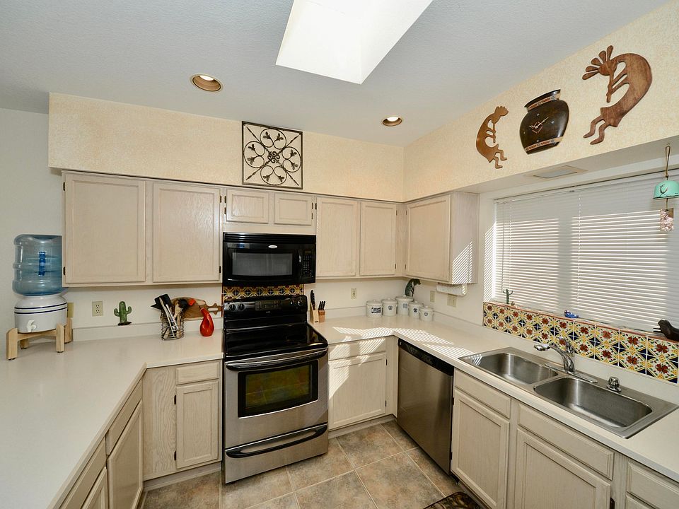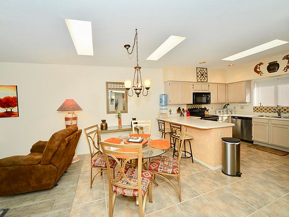 * Super clean, bright and happy townhome in very desirable neighborhood of Encanto Estates. Pride of ownership is absolutely felt in this 2 bed 2 bath home. Assessor has 1100 sq ft of living space but the 4 season sunroom has an additional 525 sf living room offering amazing private desert scape views that lure you to walk the private paths. Updates include roof just recoated, new fridge, wrought iron security door, ext. painted in 2018, hvac replaced in 2017 seamless gutters, hot water heater and water softener replaced in 2015.Furniture included with an acceptable offer!! Move right in and enjoy life with this perfect townhome.