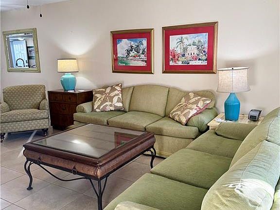 AVAILABLE for the 2026 season and Off-Season. This 2-bedroom, 2-bath condo is the perfect getaway. Located in the desirable Sandpiper Bay community in the Royal Harbor area, the condo is just minutes away from downtown Naples, providing easy access to shopping, dining, and entertainment at 5th Ave S, Tin City, 3rd Street S, Bayfront Place, and more. The beach, Naples Pier, Celebration Park, Sugden Park, and Naples Botanical Gardens are also just a short drive away. The primary bedroom features a king-sized bed, a walk-in closet, a TV, and a separate vanity area with a walk-in shower. The guest bedroom includes two twin beds (which can be combined into a king), and a TV, with the guest bath offering a tub/shower combo. The condo is equipped with a laundry area and extra storage space for your convenience with beach chairs, coolers, etc. Enjoy relaxing on the lanai, which provides a peaceful spot for breakfast, reading, or quiet time. The lanai also has glass sliders, allowing you to use it as additional interior space if desired. The Sandpiper Bay community offers two heated pools, a clubhouse, and BBQ grilling areas, with residents regularly gathering for functions during the season. Convenient to the best of Naples' attractions including pickleball and other activities at Naples Community Park and Baker Park. Residents are allowed one car. No pets allowed.
