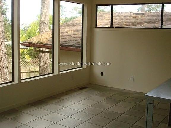 LEASE PENDING. Available now is tri-level three-bedroom, two and half bath home of approximately 2665 square feet, located at 3062 Strawberry Hill Road in Pebble Beach. This home lies within the boundaries of Pacific Grove Unified School District. A set of double doors open onto the tiled entryway. To the left of the entryway you'll enter the living room which features a gas fireplace and wall to wall carpeting. The formal dining room, with wall to wall carpeting, is located behind the living room and adjacent to the kitchen. The spacious kitchen area features light wood cabinets with slide out shelves, Italian slate floor tiles, dishwasher, electric stove top, two wall ovens with broiler, built in microwave, refrigerator, Corian and granite countertops, built in breakfast table, built in desk and bookshelves, a breakfast nook and large windows overlooking the forested backyard. A large bonus room, with half bath, is located on the lower level of home. In the past this has been used as a home office or family room. You'll find a small deck adjacent to the bonus room. All three bedrooms are located on the upper level. The master suite features ample closets in both the bedroom and adjoining bath-dressing room. The guest bedrooms are located at the front of the home and both feature sliding doors leading out to a front deck. Washer and dryer hookups are located in the attached two car garage, on remote. This is a non-smoking home. One small dog will be considered, if accepted $35.00 per month pet rent is applicable. The tenant is responsible for all utilities and yard maintenance. To view this home please feel free to stop by Central Coast Property Management, located at 816 Wave Street in Monterey, right around the corner from the Monterey Bay Aquarium, to check out a key "ICH". Keys are checked out Monday-Friday from 10 am-2:30 pm, they are due back by 3:45 pm the same day. A key deposit of $50.00 will be held, this can be in the form of cash or you may opt to leave a credit card on hold Owner pay sewer and trash ( 20 gallon trash can).