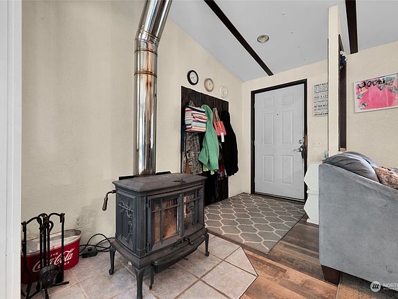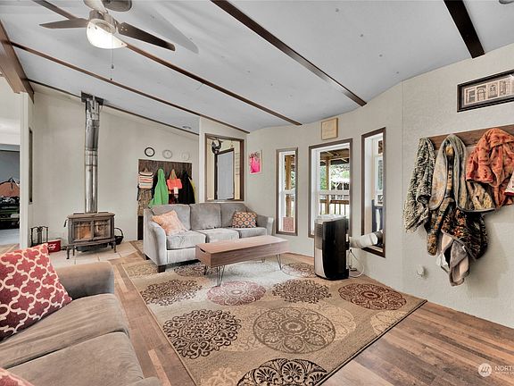 Private and secluded home, w/3bds & 1.75bths, located in park-like setting on 2.77 acres. Main living space has vaulted ceilings for more spacious feel. Kitchen has refinished cabinetry, SS apps & skylight. Many updates throughout home include, flooring & countertops, new roof, newer water heater. Primary suite has walk-in closet +3/4 bath. Plenty of room for whatever your desires or hobbies. 2 huge shops to accommodate. The 36'x40' shop w/woodstove, loft and power; on it's own meter. Great for a mechanics dream shop! RV outlet outside. Covered RV storage. Additional shop with plenty of space to put your motorized toys or storage! The detached garage has 12' doors and carport. Storage shed w/power! Nearby trail goes to Whitehorse Mtn.