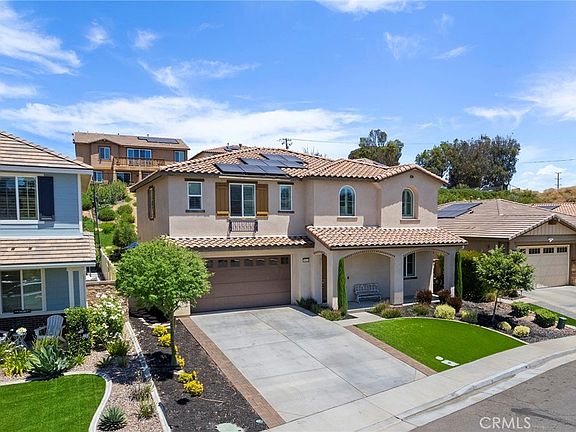 This stunning Temecula, Nicolas Heights gated community two-story home spans 2985 sq.ft. and features 5 bedrooms and 3 bathrooms, (which includes a convenient downstairs bed and bath). The chef's kitchen, equipped with luxurious quarts countertops and high-end stainless steel appliances seamlessly adjoins a spacious great room, ideal for entertaining and family gatherings. Downstairs boasts upgraded tile flooring that adds a touch of elegance while plush newer Berber carpet enhances the comfort of the upstairs bedroom areas. The upper level includes a laminate staircase and flooring, a versatile bonus room perfect for a home office, gym, or playroom. A generous laundry room with ample storage and counter space makes household chores a breeze. The master suite offers a serene retreat with a spa like ensuite bathroom featuring dual vanity, a soaking tub, and a separate glass-enclosed shower, balcony out the dual sliders, and walk-in closet with custom built-ins. Three additional well-appointed bedrooms provide ample space for family and guests. Nestled in a quiet cul-de-sac, the property boasts a large backyard perfect for outdoor entertaining, gardening, or simply enjoying the serene surroundings. Additional upgrades include energy-efficient windows, state of the art security system, and Equipped with smart technology, leased solar panels, energy efficient whole house fan, nest thermostat, ring door bell, wireless security system, fire sprinklers, and tankless water heater. 3 car tandem garage with epoxy flooring. This home combines luxury and practicality, offering an unparalleled living experience just down the street from the award winning Temecula Wineries, old town shopping, and schools. HOA offers splash park, 2 gate entries and walk through single gates. Don't miss this Beautiful home. Seller credit towards buyers closing costs.