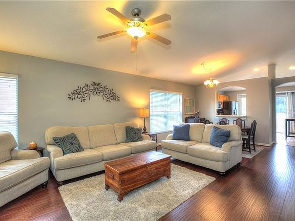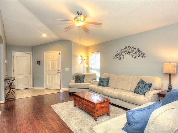 Ready to move? Come and see this charming 3 bed/2 bath/2 car garage home in Country Walk! Dark wood-laminate floors greet you upon entering the house which lead directly into the living and dining rooms. A kitchen with oak cabinets and stainless steel appliances overlook the living and dining areas and creates a great space to entertain. The back door sliders lead out back to a huge green space that (with the exception of your yard) is maintained by the community! The master bedroom accommodates a king-size bed and has a walk-in closet. The second and third bedrooms share a bath that has a tub/shower combo. This cute neighborhood comes with a clubhouse, pool, tennis & basketball courts, and soccer field all maintained by your low HOA! The community has many planned events for everyone to participate in. Convenient to Wiregrass Mall and the Tampa Premium Outlet Center, and restaurants! Call today as this home will not last long!
