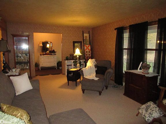 Welcome to the country! This wonderful ranch has a roomy and great lay-out with over 2000 square feet and sits on approximately 6 acres. The kitchen has beautiful cherry cabinets with so much room to work. All 3 bedrooms are large and on the main level. Convenient laundry/mud room right off of the oversized attached garage. Owner's suite has a 12' x 7' walk-in closet, and a bathroom with a walk-in shower and separate jetted tub. Anything is possible in the full unfinished basement with 10' ceilings and a walk-out door. Game room? Additional bedrooms or family room to just to name a few. Huge yard and deck too! One owner home!