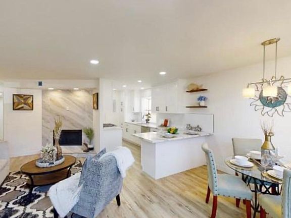 Beautiful, renovated condo located in Point Loma neighborhood! This condo boasts an open floor plan, bright natural lighting, and an amazing upgraded kitchen with new stainless-steel appliances. Open living room has fireplace and ample space for entertaining including breakfast/bar top. The bathroom is completely renovated with new sink vanity and shower/tub. New paint and luxury vinyl plank flooring throughout. The unit has plenty of storage and laundry closet with stackable washer/dryer. Bedroom has natural lighting with large walk-in closet and private patio. Covered parking space directly in front of unit and ample street parking. Two separate patio areas provide plenty of beautiful coastal sunshine. Common areas include two pools, one heated, jacuzzi and lush landscaping. Baron's market, Starbucks, and Orange Theory fitness all within walking distance. The condo is located near multiple freeways, the iconic Sunset Cliffs, Liberty Station and two miles from the beach.