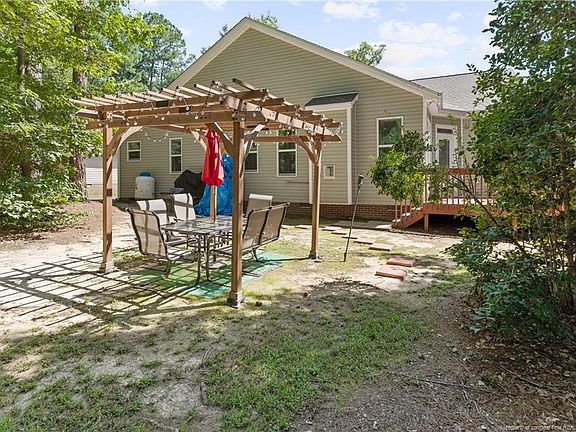 Come check out this beauty nestled in the heart of Carolina Trace! Located on a cul-de-sac, you are sure to find some peace in this quiet little niche of this golf community. Step out onto your front porch and catch a glimpse of the lake across the street! 3 bedrooms, 2 bath home with hardwood floors throughout the main living areas, carpet in the bedrooms, and tile in the bathrooms. Master bedroom has full walk-in closet and garden tub with separate stand-in shower. Entertain your guests on the back deck or under the custom built pergola in the backyard. No matter how you choose to enjoy this home, you will be sure to enjoy it for years to come!