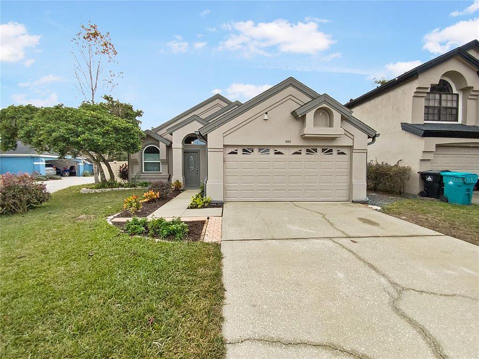 One or more photo(s) has been virtually staged. Welcome to this beautifully maintained property, freshly painted with a neutral color scheme. The kitchen boasts a stylish accent backsplash, all stainless steel appliances, and a center island for convenient meal preparation. The primary bathroom is designed for relaxation with double sinks and a jacuzzi tub. Step outside to a covered patio overlooking a private in-ground pool in the fenced backyard. An added bonus is the storage shed for all your outdoor needs. This home is a true gem, offering a perfect blend of comfort and sophistication.
