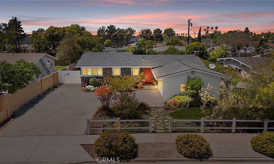 Say hello to this stunning home in the highly sought after Halecrest neighborhood in Costa Mesa. This well-maintained home offers a perfect blend of modern amenities & tasteful upgrades, making it a comfortable & stylish living space. Upon arrival, be enchanted by the beautiful landscaping full of color & texture, also drought tolerant. As you enter through the Dutch front door, you will feel right at home. The original garage was permitted & converted into extra living space, approximately 340 sqft of what is now the primary living area of the home. The interior is filled with natural light, featuring dual pane windows & recessed lighting. Recently installed in 2022, high-end 9” wide LVP flooring runs throughout the home with 6” baseboards. Enjoy an inviting & cozy atmosphere in the dining room which features a wood burning fireplace wrapped in shiplap with a reclaimed wood beam mantle. Off the dinning area is the kitchen that was refreshed in 2020 with quartz counter tops, ss sink, & subway tile backsplash. The kitchen also features a Samsung 5 burner ss range, built in microwave, new ss dishwasher, bar counter, & tile flooring. Hall bathroom was refreshed in 2015 with a subway tile bath shower combo & Kohler toilet. 2 generous size bedrooms with roller shades & ceiling fans, one bedroom has a new California closet. The primary bedroom fits a king size bed & has recessed lighting, a ceiling fan & new California closet. The en-suite was refreshed with new toilet, floor tiles, shower tile & floating glass door. The backyard is larger than most in the neighborhood & was extremely well designed & features artificial turf, Interlocking pavers, permitted block wall, covered seating-patio area for entertaining, dog run on side of the house, beautifully landscaped with fruit trees of Lemon, Orange, Mandarin, Lime and Grapefruit. There is also a covered patio/sun room. GREAT OPPORTUNITY FOR ADU! The 2+ car garage is finished with drywall, insulation, flooring & wall air conditioner unit. There is a small bathroom with shower, toilet, sink & small kitchenette in the garage. RV access as well. Other upgrades include electrical panel 2017, Bryant 3 ton high efficiency A/C 2017, Lennox furnace & new ducting in 2017, Bradford White H20 heater 2022, exterior painted 2020. Driveway re-poured 2017. This home is ideally situated within walking distance to top rated Killybrooke Elementary, Halecrest Swim & Tennis Club, shopping centers & all the amenities you need.