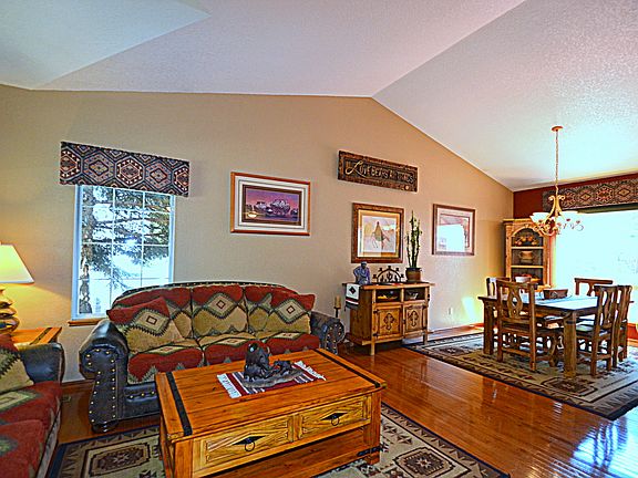 3 CAR GARAGE Model Home w/ Mountain Views+designer upgrades:A/C,Whole house Intercom/Music System,Alarm,2 Fireplaces,Redwood Deck,Fully fenced yard,Separate Dog Run,Large corner lot,storage shed. Hardwood in Office,Living+Dining Rm. Allergy free tile and hardwood floors. Main level Master. Newer Roof. Crab Apple+Cherry Trees. Main level Office. Vaulted ceilings. Finished basement w/great rec room, fireplace and wet bar. Quality home! Easy access to shopping,Parks,Peterson/Shriver AFB,Costco. Move In Ready!,Enjoy main level living in this well-maintained ranch style home. Loved and cared for home - original owner. Well designed, free-flowing floor plan with spacious, sun-filled rooms. Open and bright great room concept. 3,248 square feet. 5 bedrooms and 3 baths. Main level study with French Doors. Vaulted ceilings throughout. Formal and informal living areas. Whole house intercom/music system. Security system. New roof in 2012. Extra large 114 gallon water heater. South western style accents. Arched architectural features, rounded corners, ceiling and chair molding. Hardwood floors. Family room has a cozy, brick gas fireplace, built-in niches. Breakfast nook off the kitchen walks out to the back deck. Main level master suite has a walk-in closet, private bath with dual vanities, oval soaking tub shower. Fully finished basement features a huge recreation room, 3 bedrooms and a bath w/jetted tub. The recreation room has a stacked stone Heat and Glow fireplace and wet bar with mini fridge. Situated in Springs Ranch on a quiet cul-de-sac, corner lot. 20x18 redwood deck, storage shed, garage with built-in workbench and cabinets).