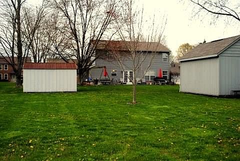 Peaceful large front porch introduces you to this spacious two-story four-bedroom home with a huge back yard that features two out buildings and a patio. Updates include new second-floor carpet and paint, laminated flooring on the first floor and a new garage door opener. The siding and roof have also been replaced. This special home features a formal living room, formal dining room and family room.