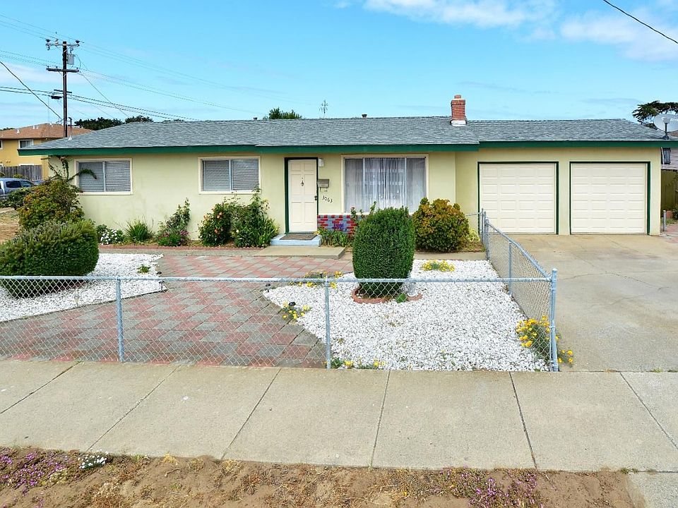 Recently reduced! Situated on a large 7900 sq ft corner lot, this Marina home has lots of possibilities. 3BR/1.5 bath. Needs mostly cosmetic updating. Original hardwood floor under carpet. New roof and garage doors recently installed. The paved backyard is inviting with spring flowers in bloom behind a cozy gathering paved area perfect for a barbeque and family get together. Walking distance to schools, church and shopping center. Sellers very motivated. Bring in your offer.