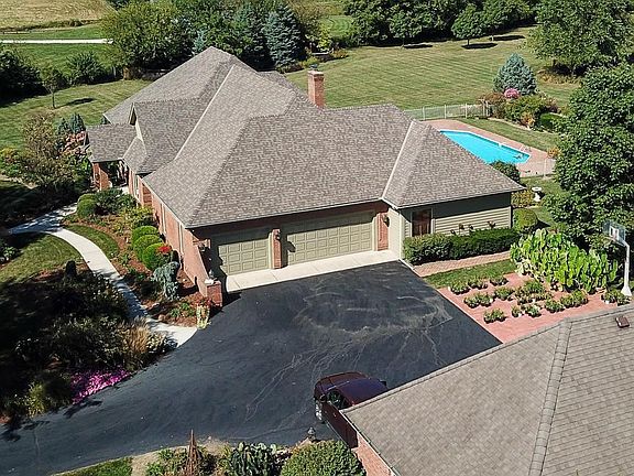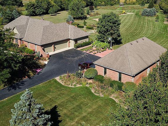 Stunning custom home on almost 7 acres in Hilliard Schools with nearly $150,000 in updates/upgrades in the last 10 years. Sunken GR with vaulted ceiling, fireplace, wet bar, door to screened porch, wall of windows overlooking private in ground pool. Kitchen offers granite counters, custom cabinets with pull-outs, upgraded appliances, and bay window dinette. Vaulted master has seating nook, door to back patio, bath with his/hers vanities, Jacuzzi tub and WIC. Jack-n-Jill bath separates over-sized guest bedrooms. High ceilings in large finished basement. Att. 3 car side load garage, detached 27x54 3 car garage with finished man cave and full bath. Land is perfect for adding fenced pastures/barn as water runs throughout the back with it's own well. Nature trails to explore 2 doors down!!