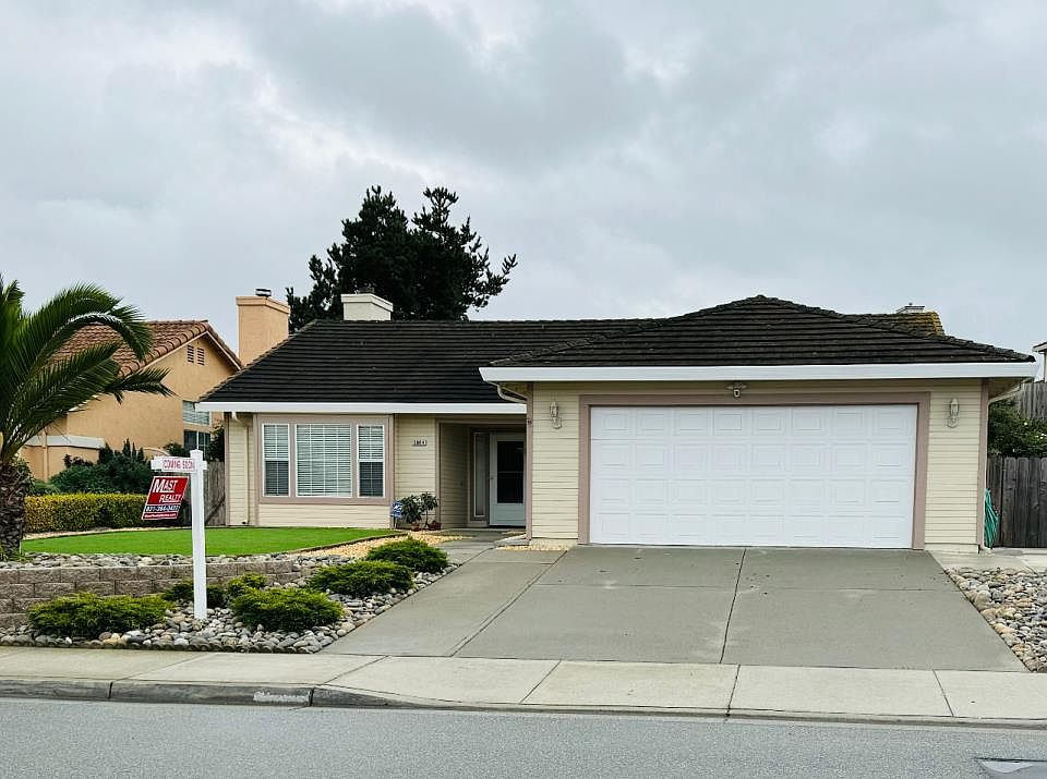 Beautiful 3 bedroom home in Eastridge Estates in the sun belt of Marina. Great curb appeal featuring professionally landscaped front yard with artificial turf. Vaulted ceiling in Living/Dining room and Kitchen/family room. Tiled kitchen with island for nice open concept to family room and dining nook that opens to the back patio. Large primary suite with walk in closet, and en suite with double sinks, oversized tub with shower over and separate water closet.