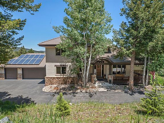 Welcome to this custom-built 5 bed/ 5 bath, 4385 sq ft home in the gated, 16-home community of Elk Summit offering sophisticated design and superior craftsmanship throughout. Enjoy the front covered porch with a tranquil water feature, leading into a grand foyer and open floor plan that boasts a dramatic wall of windows, soaring ceilings, and a stunning fireplace framed in attractive, modern granite with uplit mantle. The main floor living features a spacious master suite with a luxurious master bath, walk-in closet, and colorful Colorado sunrises. The gourmet kitchen is a true entertainer’s delight, equipped for the chef with high-end appliances and a functional work flow, all set on stunning slab granite counters with rich cherry cabinetry. A stylish formal dining room, a cozy study with its own fireplace, and a conveniently located and generously sized mudroom and laundry room complete the main floor. Upstairs, two spacious bedrooms offer privacy, each with en suite bathrooms and walk-in closets. Step outside to enjoy an oversized redwood deck, covered patio, and views of Elk Meadow and Bergen Peak, perfect for outdoor entertaining and relaxation. Deck stairs lead down to patio with hot tub, also accessible by the walk-out basement. The property offers ample parking with a three-car oversized attached garage and an additional two-car detached garage. This home is designed for ultimate comfort and convenience, featuring a maintenance-free solar panel system, two furnaces, AprilAire house humidifier, and central air conditioning. As part of the gated Elk Summit community, residents have neighborhood hike/bike access to the Elk Meadow Open Space Trail System for outdoor activities. You’re just minutes away from relaxing in Downtown Evergreen and at Evergreen Lake, along with easy access to Denver and I-70, gateway to our fantastic Rocky Mountain recreational destinations. For more information see your website at: https://homes.livsothebysrealty.com/3064elkviewdrive