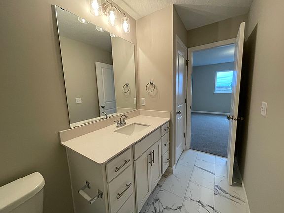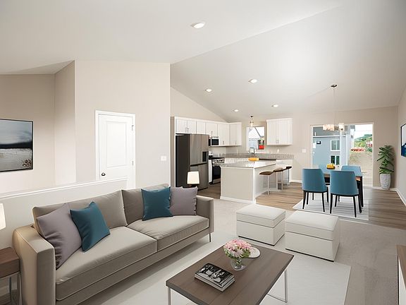 Home is Under Construction offering an estimated early June move-in! Highlights include stone accents, unfinished walkout lower level, & Pella windows. Sod, irrigation system, & front yard landscaping included. This plan is a modern styled split level home in a thoughtfully crafted open-concept plan. Main level boasts a vaulted ceiling, natural lighting, & detailed amenities. Kitchen highlights include a spacious center island, window overlooking the backyard, stainless steel appliances, quartz countertops, & painted white cabinets. Primary suite features a walk-in closet & private 3/4 bath. Two additional bedrooms offer walk-in closets. Spacious walkout lower level is ready for future finish including a family room, 4th & 5th bedrooms, flex room, & bath. Some photos may not depict actual plan, features, materials, and finishes included in this home. All measurements are approximate.