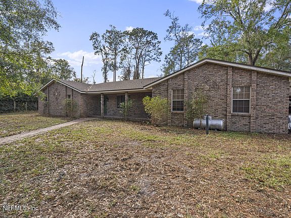 SOLD AS IS: 3/2/2 home on 1.07 acres. Welcoming, country-style covered front porch, front door opens to foyer and formal dining room features an elegant Italian crystal chandelier and custom, built-in cabinets. Kitchen boasts a chef-grade gas stove, granite countertops, and a movable prep island. Also, cozy family dining area. Separate laundry room, huge bonus room/home office. Living room offers vaulted ceilings, fireplace, built-ins, tile floors, and dual doors leading to a covered, screened patio—perfect for relaxing or entertaining. A hallway leads to two guest bedrooms, a guest bath with shower/tub, and a primary suite with two separate dressing rooms, dual vanities, and a walk-in shower. Enjoy the expansive grounds with a boat house, raised bed gardens, impressive 50x60 steel building with office space and two rolling doors providing access to a huge storage area. Land also hosts a concrete RV pad with 50 amp electrical and water available. So much to see and experience.